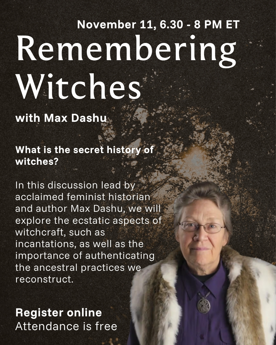 The vilification of witches and witchcraft was a crucial, and very intentional, part of the process of capitalist enclosure. It is one of many examples of genocide against women, pronatalism, demonization of traditional knowledges, disruption of non-male solidarities, and the beginnings of the invisibilization of women’s labor. Despite these attacks, people persecuted by patriarchy and sacrificed to capital practiced resistance and solidarity that still persist strongly today. So too do the spaces for holding unconventional and traditional wisdoms of those villified as witches. In this discussion, we will explore what it means to be a witch, why they have been made so feared, and how we might reconnect with witchcraft. Acclaimed feminist historian and author Max Dashu will join us to lead this discussion.